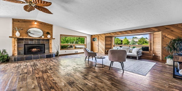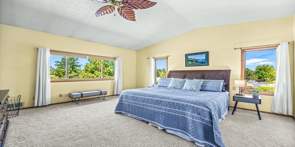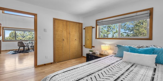 Located in the coveted Southwest section of Bend, this rare offering affords the ultimate open floor plan with optimal indoor-outdoor flow, vaulted ceilings, wonderful light throughout and inspiring outdoor spaces. The main room offers a Chef's kitchen, eat-in dining area and adjoining media room, complete with an oversized fireplace insert, floor-to-ceiling textured fireplace surround and access to the exterior through a set of huge sliding glass doors to the majestic backyard, perfectly designed by a master gardener. Close to best hiking & biking trails, restaurants and the award-winning Bend Schools. It is not one to be missed!