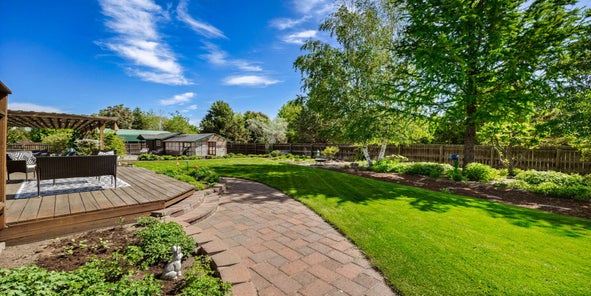 • As you step onto this picturesque lot, you will be captivated by the serene and peaceful atmosphere that surrounds you. The expansive garden, spread across this generous space, is a haven for greenery and tranquility. The property's park-like level lawns create an enchanting landscape, offering a seamless extension of nature's beauty. These meticulously manicured lawns are perfect for those seeking a tranquil space to relax and unwind.